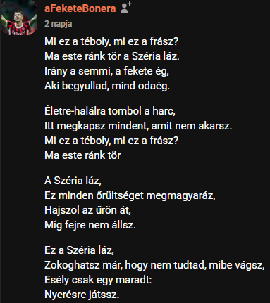 Így az állás maradt 1-1, a Maxiboyz pedig 17(!) meccse nem talált legyőzőre. Holnap pedig a Fiorentina állhat sorba a tüzifáért, hasonlóan szórakoztató mérkőzés van kilátásban. Addig is had zárjam ezt az öfit FeketeBonera művével, ami akkora banger, hogy vétek lenne nem kiemelni a kummantmezőből. Forza!